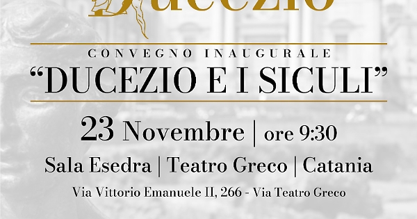 “Ducezio e i Siculi”. Questo è il nome del convegno che si svolgerà nella splendida cornice della Sala Esedra del Teatro Greco di Catania domani 23 novembre a partire dalla 9.30. Un appuntamento organizzato dalla Fondazione “Ducezio” e dedicato ad una delle figure più affascinanti della storia antica siciliana.