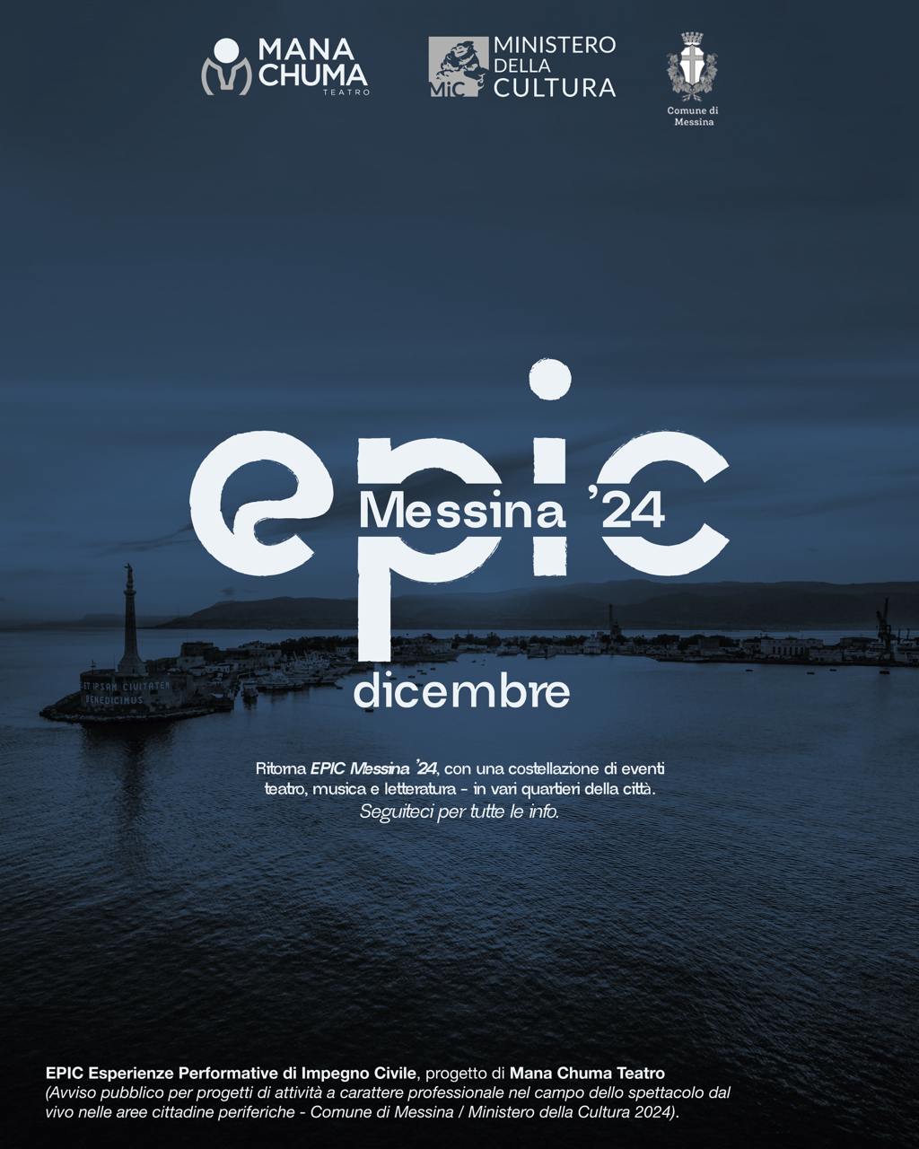 EPIC Esperienze Performative di Impegno Civile, è un progetto di Mana Chuma Teatro (Avviso pubblico per progetti di attività a carattere professionale nel campo dello spettacolo dal vivo nelle aree cittadine periferiche - Comune di Messina / Ministero della Cultura 2024).