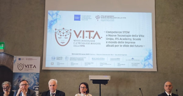ITS Academy Nuove Tecnologie della Vita A. Volta, UniPa, Scuole e Sicindustria alleati per le sfide del futuro. Presentato stamattina nella Sala delle Capriate di Palazzo Chiaromonte Steri il Progetto V.I.T.A., un modello di orientamento innovativo sulle STEM, che punta a costruire un ponte concreto tra la formazione tecnico-scientifica in ambito biomedicale e il mondo del lavoro. Il Progetto, selezionato e sostenuto dal Fondo per la Repubblica Digitale - Impresa Sociale, è promosso dall’ITS Academy Nuove Tecnologie della Vita A. Volta di Palermo, in qualità di Soggetto Responsabile, in partnership con l’Università degli Studi di Palermo - Dipartimento di Biomedicina, Neuroscienze e Diagnostica (BIND), Sicindustria, Fondazione Hora, La Linea della Palma APL e ben sei Scuole Secondarie: l’I.I.S.S. “Ernesto Ascione” di Palermo, il Liceo Classico “Giovanni Meli” di Palermo, il Collegio Gonzaga, Casa della compagnia di Gesù Palermo, l’ I.I.S.S. “Alessandro Volta” di Palermo, l’I.I.S.S. “Giuseppe Minutoli” di