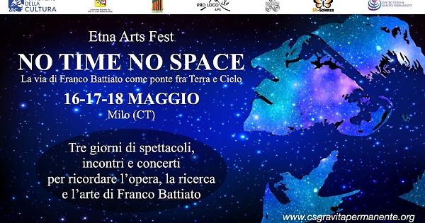 A Milo il Centro Studi di Gravità Permanente, con la direzione artistica di Fiorella Nozzetti, organizza il 16, 17 e 18 maggio, "Etna Art Fest –No Time No Space. La via di Franco Battiato come ponte tra terra e cielo", sostenuto dal Ministero della Cultura Italiana come Progetto Speciale 2025. A quattro anni dalla scomparsa dell’artista, avvenuta il 18 maggio 2021, Milo, luogo dove Franco Battiato ha vissuto e trovato il suo genius loci, ospiterà tre giorni intensi di incontri ed eventi in continuità con l’opera e la testimonianza di Franco Battiato.