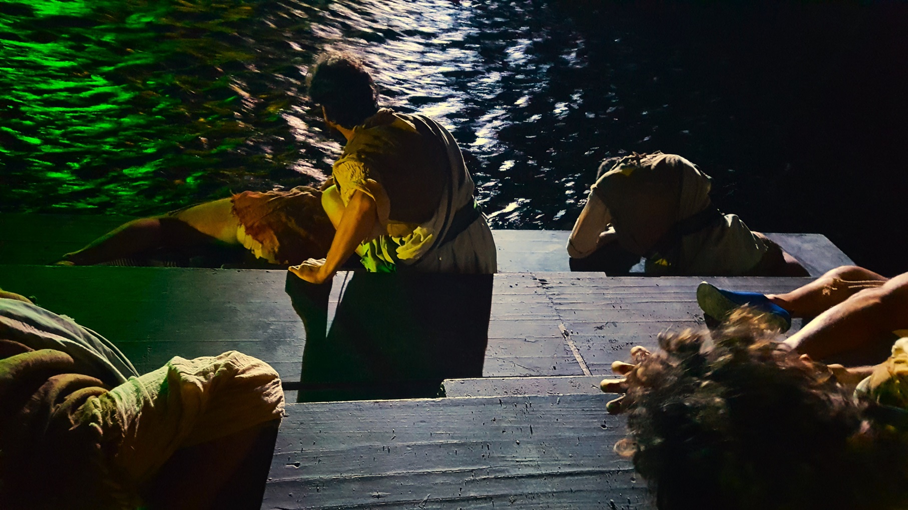 L’adattamento di Anfuso del poema omerico prevede due Ulisse sulla scena: il giovane, interpretato da Ruben Rigillo, che vive le storie di Polifemo, di Circe, delle Sirene, e l’Odisseo che torna Itaca ormai anziano, reso in scena da Sbrogiò.