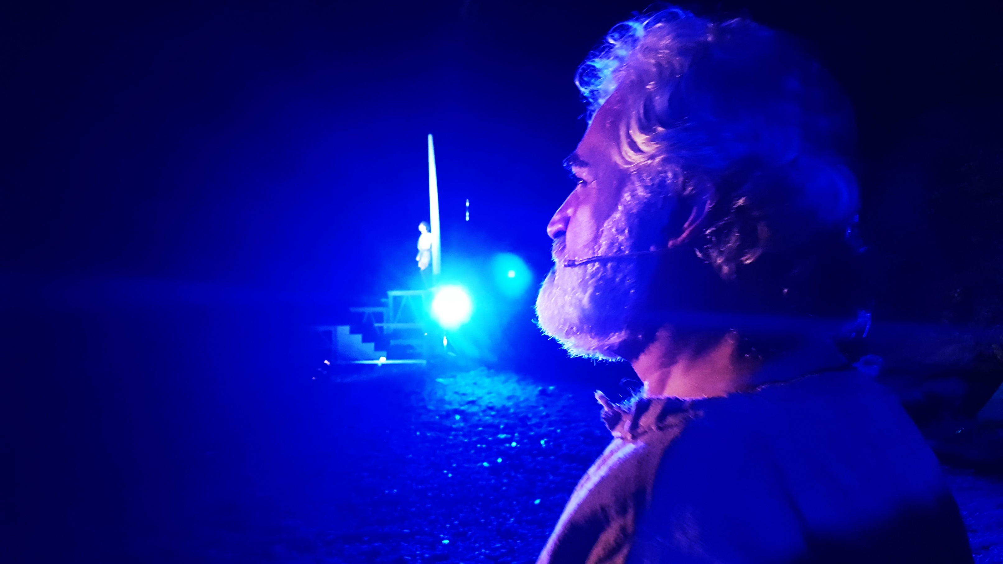 e - Un'intensa espressione di Davide Sbrogiò nei panni di Ulisse da anziano
