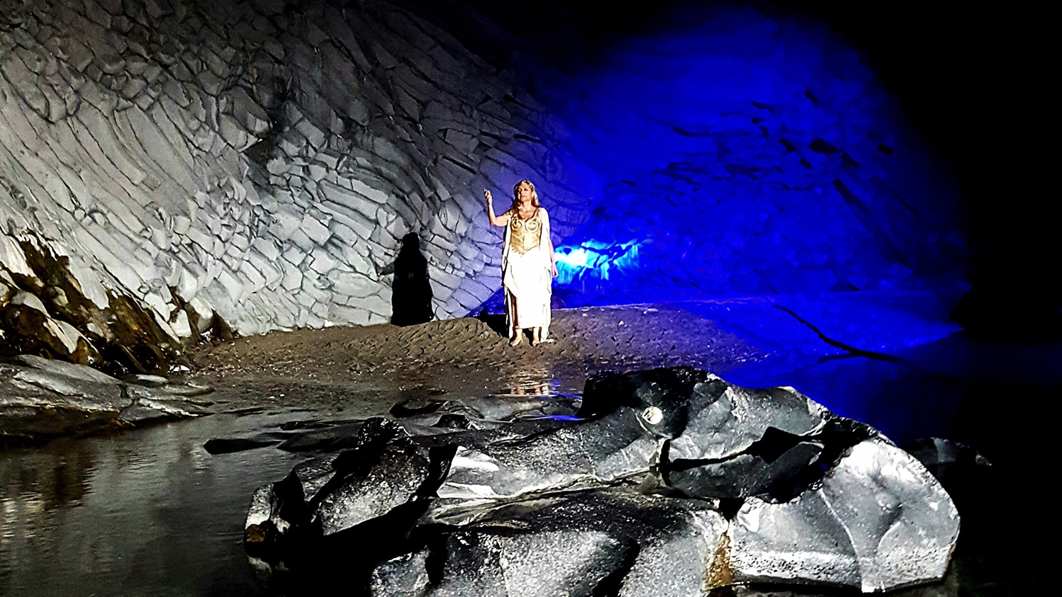 b - Liliana Randi, nei panni di Atena, calata, nell'edizione 2020, nello splendido scenario delle Gole