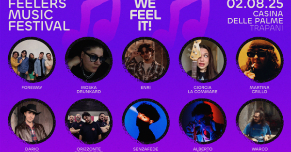Sono nove, tra cantautori e band, le proposte musicali alternative che si succederanno sul palco della Casina delle Palme di Trapani sabato 2 agosto a partire dalle ore 18 all’evento “We Feel It!” organizzato dalla start up di due giovanissimi, la Feelers di Giacomo Brancaleone e Gianluca Coppola, in co-produzione con l'Ente Luglio Musicale Trapanese.