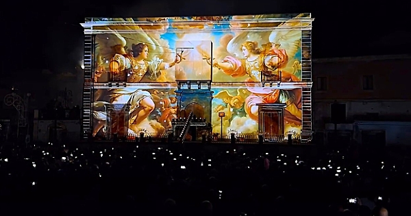 Domenica scorsa trentamila persone hanno assistito al racconto multimediale “Aletheia, la rivelazione di Nicolò”, prodotto da Buongiorno Sicilia e proiettato in videomapping sul prospetto di Palazzo dei Bianchi, con al centro la figura del cherubino ispirata agli angeli della Volata di Adrano. A lasciare senza fiato la piazza, le parole emozionanti della drammaturgia di Giuseppe Lazzaro Danzuso, le fantastiche immagini, realizzate dal colosso internazionale dell’entertainment design D-Wok, le affascinanti musiche di Massimiliano Pace, la voce di Eleonora Sicurella, i giochi pirotecnici di Fire play di Santangelo, con il coordinamento del direttore creativo Gaetano La Mela. Poi, la raccolta di foto storiche della Volata. E il sindaco di Adrano Mancuso ha annunciato una nuova proiezione del racconto multimediale in inverno, al chiuso, nel Teatro Bellini.