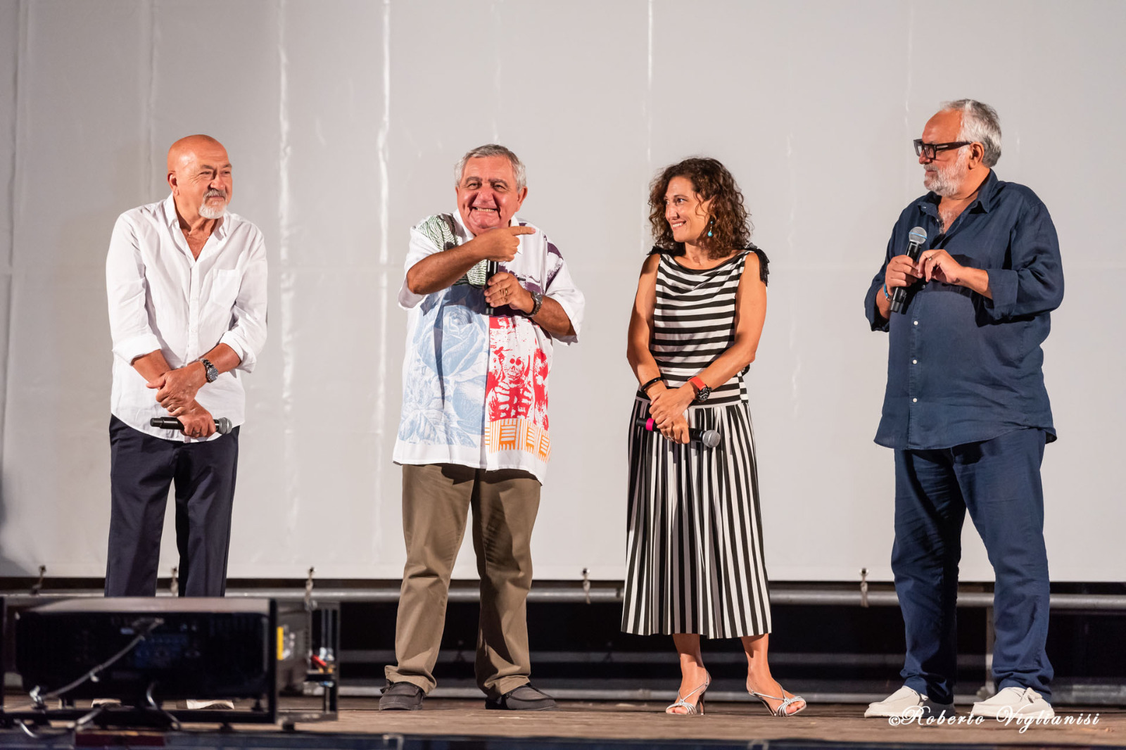 Per introdurre, davanti a oltre trecento spettatori, la pellicola, Ornella Sgroi ha dialogato sul palco con tre “ospiti eccellenti”, come li ha definiti. Ossia Gino Astorina, anima del Gatto Blu, storico cabaret etneo, e i due compagni di sempre, Nuccio Morabito e Luciano Messina, “anche loro maestri di comicità, amici carissimi di Salvo Ficarra e Valentino Picone, spesso impegnati in ruoli o camei nelle loro pellicole”.