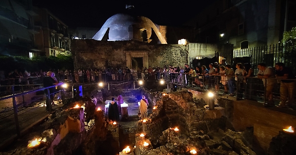 I primi due spettacoli della rassegna Eneide, dentro il mito presentata da Buongiorno Sicilia per Palcoscenico Catania sono stati seguiti in religioso silenzio non soltanto dagli spettatori nel sito archeologico, ma anche dagli abitanti delle case circostanti, affacciati ai balconi.