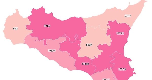 Nella settimana che va dal 23 al 29 aprile i nuovi positivi ogni 100 mila abitanti sono stati 191,8 in provincia di Palermo (nella settimana precedente e cioè quella dal 16 al 22 aprile erano stati addirittura 235,94). A Catania dal 23 al 29 aprile l'incidenza è stata di 177,92 (nella settimana precedente era di 197,04). A Enna il dato dice 54,27 (era di 122,01). A Messina 97.17 (la settimana precedente 119). A Siracusa negli ultimi sette giorni i nuovi casi ogni 100 mila abitanti sono stati 157,85 (la settimana dal 16 al 22 aprile era di 160,43), a Ragusa l'ultimo dato dice 146,37 (era di 144,47 la settimana scorsa), ad Agrigento l'ultima rilevazione è di 106,94 (la scorsa settimana era di 137,43, a Caltanissetta l'ultimo dato è di 174,84 (precedente 222,7) e a Trapani invece al 29 aprile l'incidenza è di 64,3 casi ogni 100 mila abitanti (era di 99,67).
