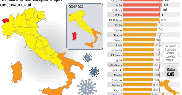 Tutti dipende dai numeri dei contagi: e la Sicilia purtroppo continua a stare sull'altalena, quando sembrano scendere, ecco una nuova impennata. E l'ultimo monitaraggio dell'Istituto superiore di Sanità ha evidenziato nell'Isola un indice di trasmissibilità ancora superiore a 1.