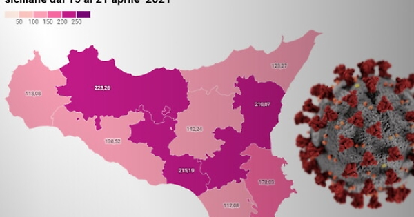 A Palermo l'indice in questione è nettamente in calo, dopo essere arrivato sino a 152. In base ai dati pubblicati dal Dipartimento della Protezione Civile nazionale ed elaborati dall'Ufficio statistica del Comune, ieri si sono registrati 298 nuovi positivi. Nella settimana dal 15 al 21 aprile i nuovi positivi nella Città Metropolitana sono 2711, e il rapporto nuovi positivi settimanali per 100 mila abitanti è pari a 223,26 (ieri, con riferimento alla settimana dal 14 al 20 aprile, i nuovi positivi erano 2979 e il rapporto nuovi positivi settimanali per 100 mila abitanti 245,33).