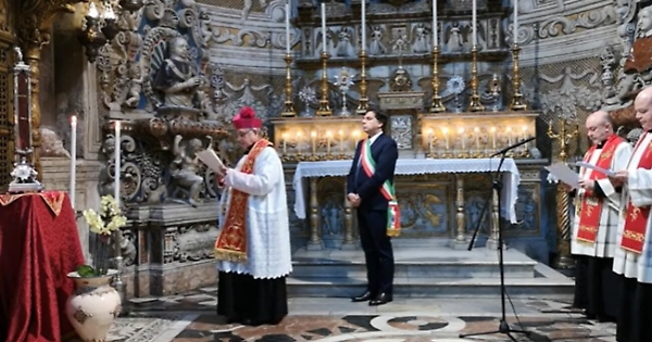 Coronavirus, arcivescovo di Catania prega davanti al Velo di Sant'Agata
