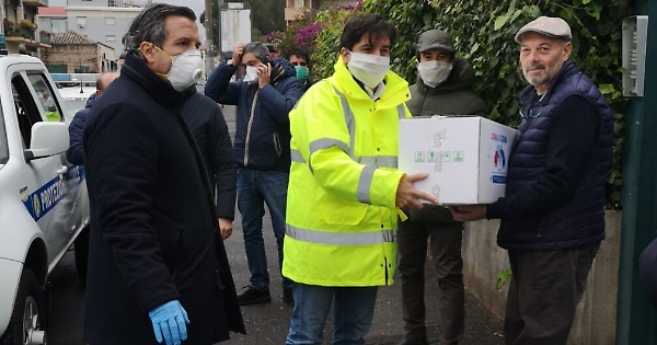 Coronavirus, sindaco Pogliese consegna pacchi spesa a domicilio