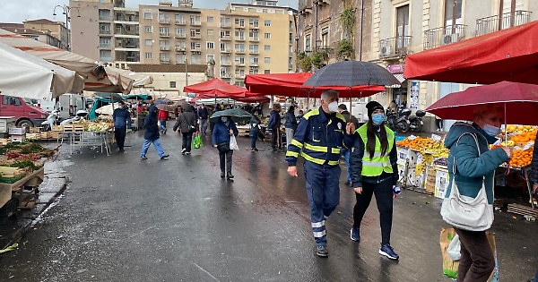 Catania - In esecuzione degli indirizzi impartiti dal Sindaco Salvo Pogliese e dall’Assessore Alessandro Porto, la Polizia Municipale stamattina ha svolto un servizio straordinario di controllo della Fiera di Piazza Carlo Alberto, con l’impiego di ben undici pattuglie, guidate dai responsabili dei reparto commerciali e viabilità e coordinate dal Comandante Stefano Sorbino. I controlli commerciali hanno riguardato il corretto posizionamento dei posteggi relativi alla vendita di prodotti alimentari, la verifica dell’eventuale presenza di venditori abusivi e il rispetto delle misure di contenimento del COVID-19 (uso della mascherina protettiva e distanziamento interpersonale) da parte di operatori e avventori del mercato. Tutti i frequentatori del mercato sono stati invitati costantemente – anche grazie all’ausilio di operatori ambientali volontari – al corretto utilizzo della mascherina e al mantenimento della distanza di almeno 1 metro. Le pattuglie annonarie sono dovute intervenire ai danni del titolare di un chiosco in via Teocrito che è stato verbalizzato con una sanzione di 400,00 euro e la chiusura provvisoria dell’esercizio per 5 giorni, perché non indossava il dispositivo di protezione individuale e consentiva un assembramento davanti alla propria attività. Nella zona non è stata riscontrata presenza di venditori abusivi.