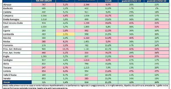 Sotto la soglia di saturazione i posti letto occupati da pazienti Covid in area medica al 32% e terapia intensiva al 24%.