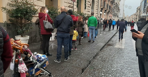 Il maltempo che nel weekend ha colpito gran parte dell'Italia, Sicilia compresa, ha un po' frenato l'assalto alle vie dello shopping a pochi giorni dall'introduzione della zona rossa totale nel Paese. Ma per esempio il passeggio ieri in via Etnea a Catania c'era comunque con alcune file che si sono formate all'ingresso dei punti vendita più grandi.