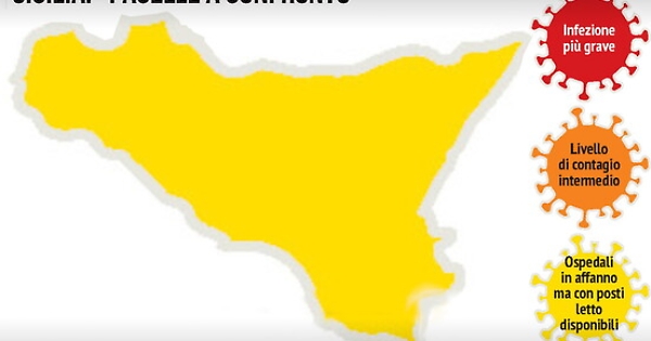 La cabina di regia nazionale promuove i progressi della Sicilia. C’entra, com’è ovvio, la capienza di posti nelle terapie intensive e nei reparti Covid. Rispetto ai dati comunicati dalla Regione, infatti, la saturazione delle terapie intensive torna sotto il livello d’allerta (dal 30% della settimana 9-15 novembre al 29% dell’ultima rilevazione del 16-22 novembre, pur con un aumento di ricoveri), mentre le degenze ordinarie, pur salendo dal 36 al 38%, restano di poco sotto soglia.