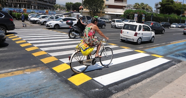 Dossi- strisce pedonali sulla pista ciclabile del Lungomare