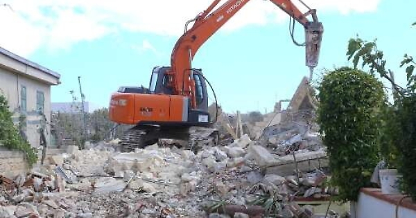 Sono riprese questa mattina, fra contrada La Rocca e Torre di Gaffe le demolizioni di alcune case abusive. Gli operai della ditta sono tornati all'opera dopo che nei giorni scorsi il titolare aveva manifestato l'intenzione di abbandonare i lavori