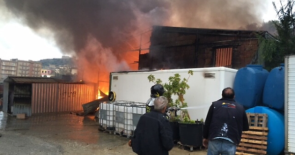 Licata, a fuoco deposito di materiale edile: danni ingenti
