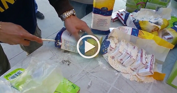 Le 46 "stecche" erano nascoste in parte dentro pacchi di farina e di zucchero e il resto nel serbatoio della macchina, immerse nel carburante e confezionate in buste sottovuoto.