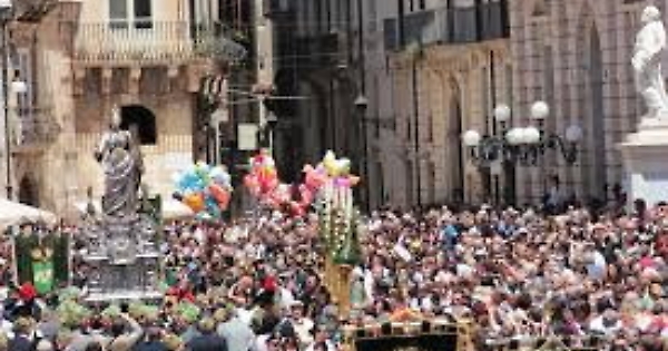 Alle 12,15 l’uscita del simulacro, mezz’ora dopo il tradizionale lancio delle colombe. Siracusa si è stretta alla sua Patrona per la Festa del patrocinio (Santa Lucia delle quaglie), che si celebra ogni anno la prima domenica di maggio. Migliaia di fedeli si sono riversati in piazza Duomo per accompagnare la Santa nel breve tragitto che separa la chiesa cattedrale dalla Badia dove resterà fino a domenica prossima, quando si svolgerà la processione dell’ottava.