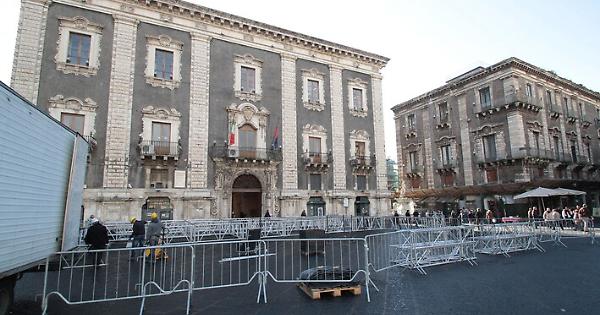 Divieto di sosta con rimozione forzata anche in via della Lettera. Il divieto riguarderà tutti i veicoli eccetto quelli degli addetti alla manifestazione, dei residenti diretti nelle rimesse, dei mezzi di soccorso e delle forze dell’Ordine. I bagni chimici saranno dislocati in via Marletta, via Vitt. Emanuele lato est (angolo P. zza Duomo) e via Etnea nei pressi di Porta Uzeda » (prospetto Palazzo dei Chierici).