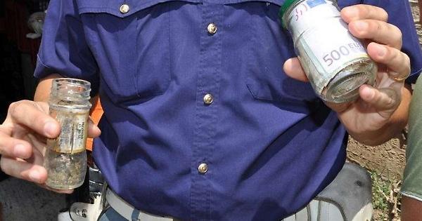 â€Nascondeva, come nella favola di Pinocchio, il denaro di provenienza dubbia, sotto terra nel giardino di casa sua. Protagonista è un 23enne di Comiso, detenuto ai domiciliari, che però oltre ai soldi, aveva sepolto diverse cartucce all’interno di un barattolo di vetro. Tutto è stato scoperto dai poliziotti del ‬Commissariato di Comiso e della Squadra Mobile di Ragusa nell’ambito di una serie di controlli di routine. Solo che a casa del giovane hanno notato una strana «piantagione» di rosmarino e basilico. Solo che tra una pianta e l’altra vi era troppo spazio e la Polizia così ha preferito verificare meglio. Scavando è venuto fuori un barattolo di vetro con all’interno alcune banconote.†C’era una banconota da ‬500†‬euro che avvolgeva parecchie altre banconote. In totale c’erano 5600 euro. Scavando ancora è stato trovato un altro barattolo in vetro con all’interno 20†‬cartucce calibro†‬7.65†‬perfettamente conservate. Il denaro è stato sequestrato†così come le cartucce inviate alla ‬Polizia Scientifica per verificarne la provenienza o l’eventuale utilizzo. Il giovane è stato denunciato per detenzione di munizionamento senza la necessaria autorizzazione.