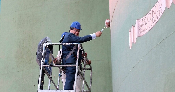 Il sindaco Bianco dà l'ulitma simbolica pennellata all'opera realizzata da street artist di fama internazionale. Il lato mare sarà completato in autunno