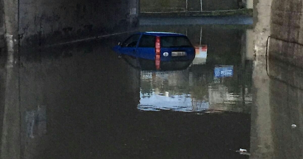 La pioggia ha bloccato un'auto in un sottopasso di contrada Piano Tavola in territorio di Motta Santa Anastasia, costringendo le due persone che erano a bordo a salire sul tetto della vettura FOTO