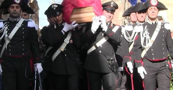 Il feretro è stato portato così nell’ex monastero e abbazia cassinese di S. Benedetto Abate. C’erano il comandante generale dell’Arma, gen. di corpo d’armata Tullio Del Sette, il comandante interregionale, gen. Silvio Ghiselli, il comandante della Legione Sicilia, gen. Riccardo Galletta, il prefetto di Catania, Maria Guia Federico. “Esistono poche risorse umane per riscattare questo momento, che deve offrire – ha detto durante l’omelia il vescovo di Caltagirone, mons. Calogeri Peri – un’occasione diversa alla nostra vita. A noi tocca solo dare il saluto della speranza e un atto di omaggio a chi ha svolto, con il più elevato senso del dovere, il proprio lavoro. Anche le nostre parole di conforto, purtroppo, sarebbero inutili. Oggi arriva una lezione profonda al nostro modo di vivere, ma sarebbe superfluo interrogarsi se la fine della vita coincide sempre con il fine”.