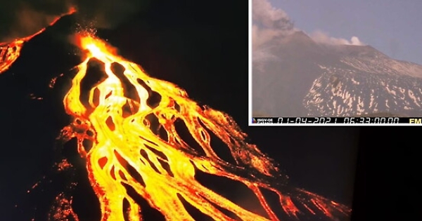 Il fenomeno è stato accompagnato da fontana di lava (cessate intorno alle 12.30) e violenti boati avvertiti anche da grandi distanze. Rimane infatti un’intensa attività esplosiva che produce una nube vulcanica che raggiunge ora circa 5.500 metri sul livello del mare che si disperde in direzione Sud.