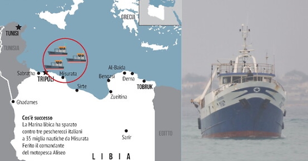 La Marina militare italiana, intervenuta con la fregata «Libeccio» in soccorso dei tre pescherecci mitragliati, dice che le imbarcazioni italiane si trovavano «nella Zona di protezione di pesca libica» a 35 miglia a nord della costa di Al Khums,. Un tratto di mare definito «ad alto rischio» dalle nostre autorità. Lo conferma l’assalto dell’unità militare libica, che non ha esitato ad aprire il fuoco. Come era già avvenuto qualche giorno fa, quando le motovedette avevano sparato contro il «Michele Giacalone», un altro peschereccio mazarese. Questa volta è toccato all’"Aliseo», all’"Artemide» e al «Nuovo Cosimo».