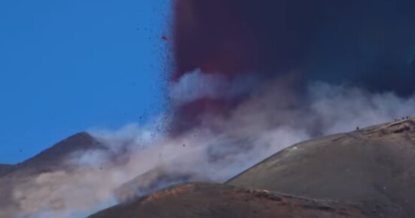 L’Istituto nazionale di geofisica e vulcanologia-Osservatorio etneo di Catania comunica che la fontana di lava alimenta un flusso lavico che si propaga in direzione sud-ovest. Si osserva un incremento dell’attività esplosiva che forma una nube vulcanica alta circa 7.000 metri sul livello del mare.