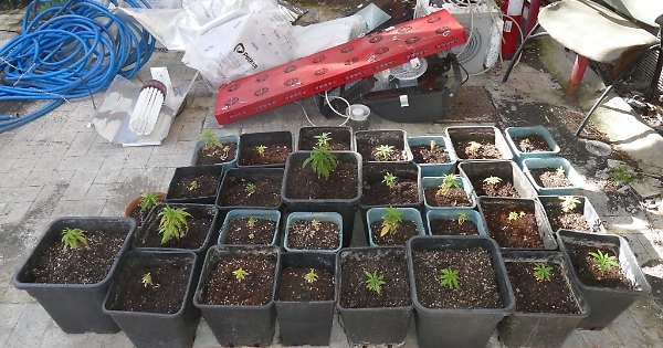 C'erano 30 vasi con altrettante piantine in fase di crescita e tutto il necessario per la loro coltivazione: un estemporaneo mini-impianto idrico, lampade alogene e a infrarossi, deumidificatori e ventilatori. Il tutto è stato smontato, sottoposto a sequestro e trasferito nei locali del Commissariato.
