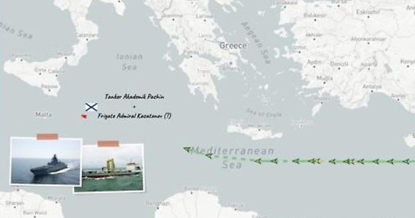 Itamilradar informa della presenza del tanker "Akademik Pashin" e della fregata "Ammiraglio Kasatonov" che stanno navigando attualmente nel Canale di Sicilia provenienti dal porto siriano di Taurus. L’ipotesi probabile è che le due navi passeranno lo Stretto di Gibilterra per tornare in Russia. La "Pashin" e la Kasatonov potrebbero essere presto sostituite dal tanker 'Kamà e dalla fregata 'Ammiraglio Gorshkov' che entreranno a breve nel Mediterraneo attraverso il canale di Suez. In questo modo la flotta russa nel bacino non diminuirà.