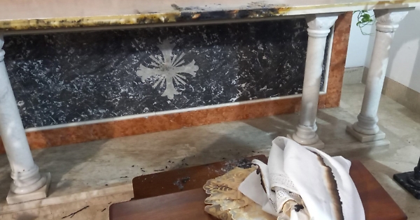 L'incendio è stato appiccato lo scorso 27 marzo all’interno della chiesa. Secondo la ricostruzione dei vigili del fuoco, che hanno spento le fiamme prima che potessero propagarsi, il rogo sarebbe stato innescato dopo avere cosparso una coperta con del liquido infiammabile e dopo averle dato fuoco sarebbe stata gettata contro l'altare.