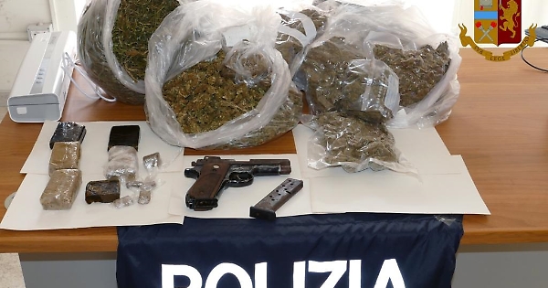 Aveva con sé due chili e 600 grammi di marijuana, 570 grammi di hashish e 10,5 grammi di cocaina. La droga è stata sequestrata insieme con una pistola calibro 9x19 con la matricola cancellata e due proiettili calibro 9 e la polizia ha anche arrestato a Vittoria un 52enne, accusato per spaccio di sostanze stupefacenti e detenzione di arma da fuoco clandestina. La vendita della droga avrebbe fruttato circa 24 mila euro. Gli agenti hanno anche sequestrato due macchine per il sottovuoto e materiale vario necessario per il peso e il confezionamento dello stupefacente. L’arma clandestina è stata sequestrata e sarà oggetto di accertamenti per poter risalire alla sua provenienza. L’arrestato è stato condotto nella casa circondariale di Ragusa a disposizione dell’autorità giudiziaria.