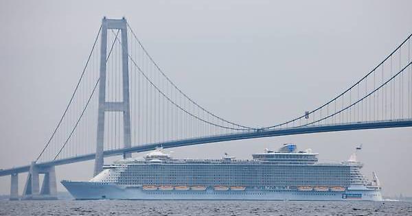 La Allure of the seas, ha fatto «un’uscita spettacolare» dal mar Baltico per il suo primo viaggio passando appena un metro sotto un grande ponte sospeso in Danimarca grazie a ciminiere retrattili.