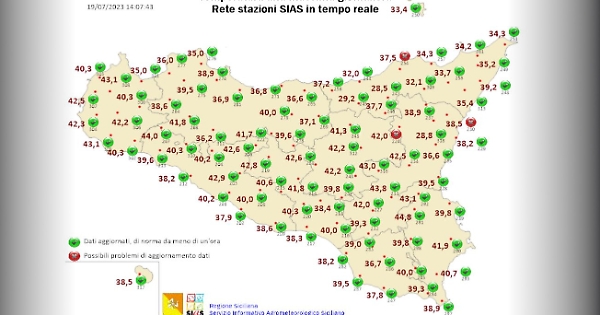Ieri in Sicilia sono state 10 le stazioni della rete Sias che hanno battuto il record di temperatura massima della loro serie iniziata nel 2002. I nuovi record sono stati raggiunti nella stazione Riesi, che ha registrato una massima di 45,8 °C; a Ribera, con 45,2 °C: ad Agrigento Scibica, che ha registrato una massima di 44,8 °C. Si aggiungono a queste la stazione di Sciacca, che ha registrato una massima di 44,4 °C; Mazara del Vallo con una massima di 44,4 °C; Piazza Armerina, con 43,9 °C; e Agrigento Mandrascava con 43,0 °C.