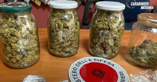 All’esito della perquisizione, in mezzo agli alimenti custoditi nella dispensa della cucina, i Carabinieri hanno trovato e sequestrato oltre 300 grammi di marijuana contenuta in quattro vasetti in vetro, di quelli solitamente utilizzati per le conserve alimentari, nonché un bilancino di precisione ed una somma di danaro ritenuta provento dell’illecita attività.