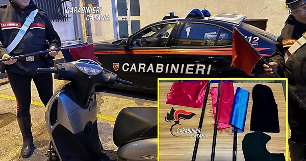 Poco dopo i carabinieri della Sezione Radiomobile della Compagnia di Paternò, impiegati nelle operazioni di “bonifica” del tragitto che da lì a poco avrebbe percorso quello stesso il pullman, hanno intercettato in via Arti e Mestieri tre scooter con la targa occultata, con a bordo tre giovani sicuramente malintenzionati che, alla vista dei carabinieri, si sono dati alla fuga. Dopo un breve inseguimento, i carabinieri hanno bloccato i tre motoveicoli e hanno perquisito i giovani a bordo, che avevano in tasca dei passamontagna e tutti erano armati di bastoni che, molto probabilmente, volevano adoperare contro la tifoseria ospite.