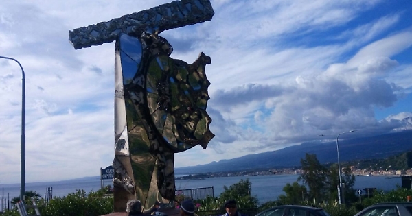 E’ stata rimossa questa mattina da Capo Taormina, «Molior» la statua opera in acciaio del maestro, Nino Ucchino. L’istallazione era stata posta quale simbolo del G7 che ha visto Taormina accogliere i grandi della terra.
