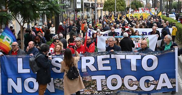 A Messina sfila il fronte del no al ponte sullo Stretto, con un corteo di migliaia di persone (duemila per la questura, cinquemila per gli organizzatori) appoggiato da 70 sigle tra associazioni, partiti, sindacati. Partito da piazza Cairoli per arrivare a Piazza Duomo é stato aperto dallo striscione con la scritta «Lo Stretto non si tocca». Tutto attorno bandiere del Wwf, di Legambiente, del M5s, del Pd, della Cgil, e cartelli contro Matteo Salvini, definito "il ministro delle bufale elettorali».