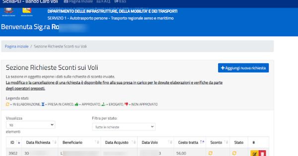 Proprio mentre torna d'attualità il caso del caro voli da e per la Sicilia per Natale, fa il suo esordio online da oggi il portale sul “Bonus Sicilia”, la scontistica (25% per tutti i residenti nell’Isola; fino al 50% per categorie speciali quali studenti, disabili e viaggiatori con Isee inferiore a 9.360 euro) prevista per per i biglietti acquistati dal 10 novembre 2023 da e per tutti gli scali di Roma e Milano. La piattaforma è https://siciliapei.regione.sicilia.it/bandocarovoli.