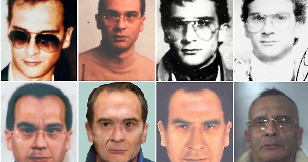 Combo con 8 foto o identikit di Matteo Messina Denaro. Le prime quattro (prima riga) sono le ultime sue foto disponibili, tutte precedenti al 1993, anno da cui ha cominciato la sua latitanza.