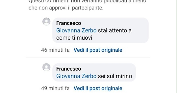 Le hanno intimato «Stai attenta a come ti muovi» e poi «Sei nel mirino». Frasi che lasciano poco alla fantasia e che vedono come vittima la fondatrice del gruppo Facebook "Oggetti smarriti o rubati - Palermo e provincia", Giovanna Zerbo, che da anni con la sua community aiuta a ritrovare auto, a sventare furti e soprattutto a mantenere alta speranza, senso civico e legalità, in una città dove pesa l’assenza di sicurezza e controllo del territorio.