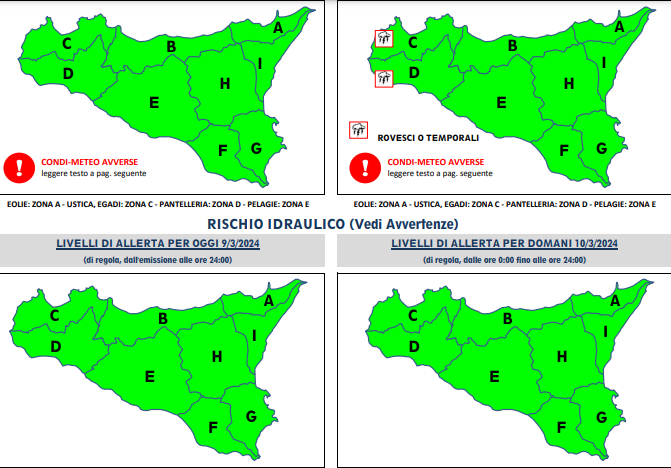 La protezione civile della Regione Siciliana ha diramato un allerta meteo per forti piogge, raffiche di vento intenso e burrasca dalla sera di sabato e per le prossime 24 ore.