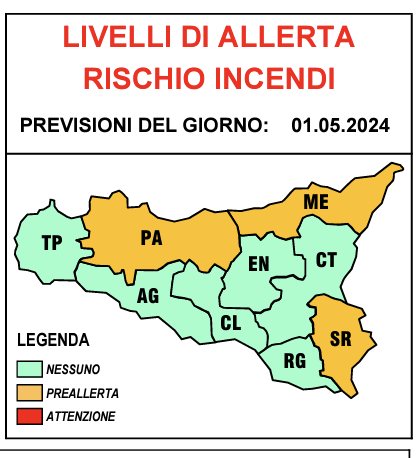 Ma paraddossalmente c'è anche un'allerta incendi per le province di Siracusa, Palermo e Messina.