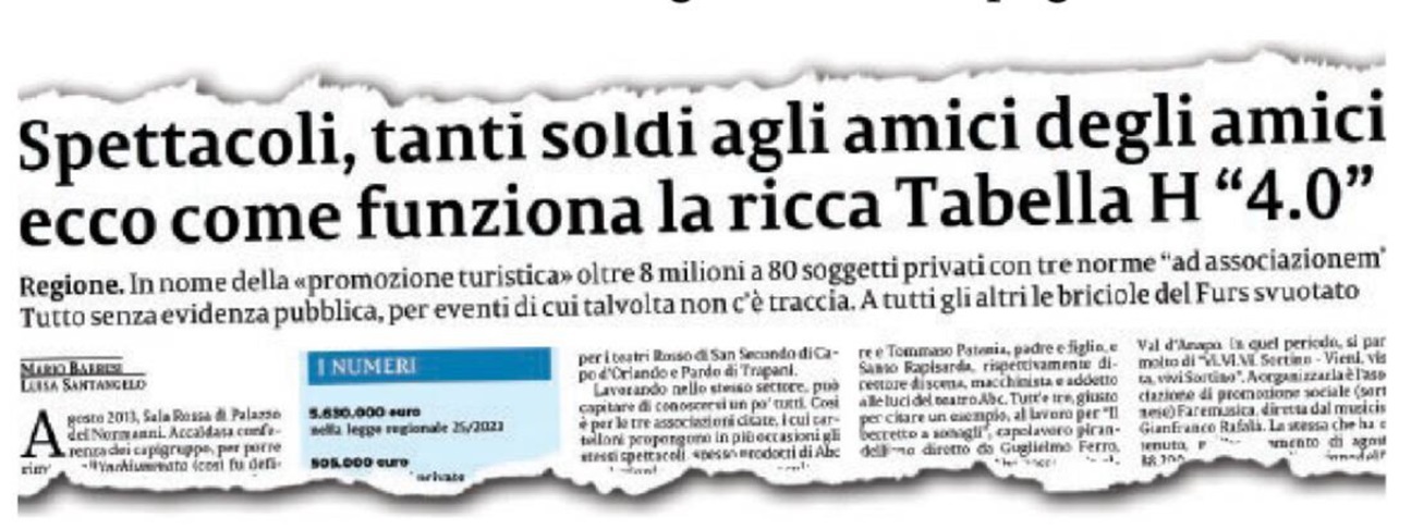 Chiude l'elenco l'associazione Cantanti & Contanti di Ragusa, beneficiaria il 16 agosto di un contributo di 49mila euro, poi rimodulato il 30 dello stesso mese, con decreto del direttore generale del dipartimento Turismo e spettacolo, in 200mila euro per l'organizzazione del Pantalica music fest 2024. A fine ottobre, l'assessorato regionale ha autorizzato la liquidazione di 160mila euro per la manifestazione che «si è svolta nella provincia di Siracusa dall’1 settembre al 26 ottobre», si legge nel decreto. Sarà colpa dei cronisti, probabilmente, avere trovato solo i concerti di Nesli (il 26 ottobre) e di Gerardina Trovato, il giorno successivo, in piazza Rizzo a Melilli. La dicitura, peraltro, non sembra essere contenuta in alcuna locandina, ma spunta solo nell’hashtag usato dall'organizzatore per lanciare gli eventi sui propri social: #pantalicamusicfest appare in tre post su Instagram e altrettanti su Facebook della Marcello Cannizzo agency. Cannizzo è stato citato già ieri in queste pagine: è lo stesso dell'associazione culturale Rusina (121.250 euro per il “Pachino-Noto-Ramacca Carneval fest”) e che promuove la partecipazione dell'artista Trovato a novembre, a Pachino, nell'ambito dell'Eloro fest. Altro evento finanziato da Mamma-Regione. Tutto si tiene, alla fine.