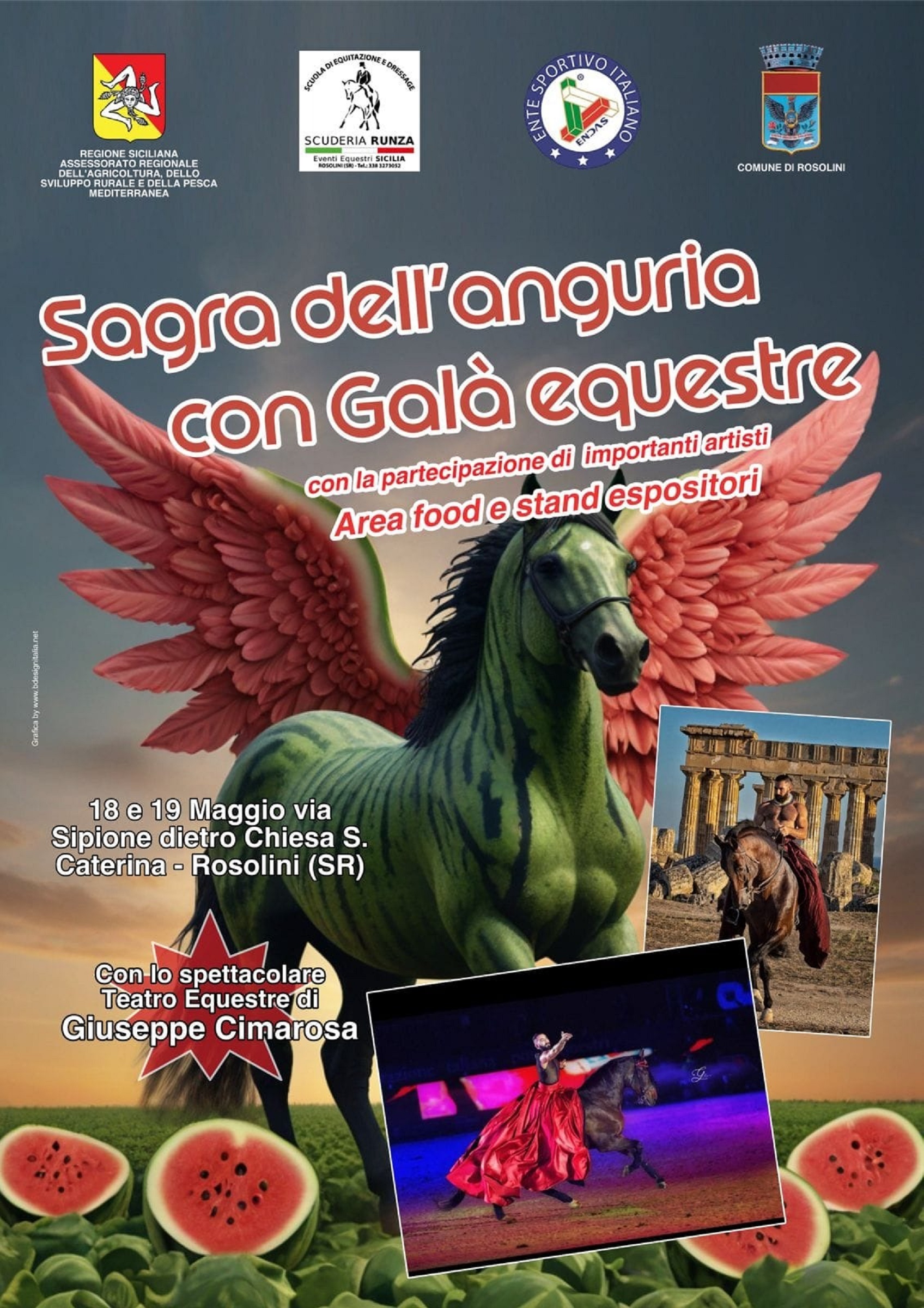Uscita dalla porta del Turismo, l’istanza rientra dalla finestra dell’Agricoltura. Ad aprile, infatti, al club di appassionati di equini viene concesso un contributo di diecimila euro «per la realizzazione della manifestazione promozionale “Sagra dell’anguria-Rosolini”», prevista per maggio. La locandina parla chiaro: non di sola frutta vive l’uomo, ma pure di un «galà equestre con la partecipazione di importanti artisti, area food e stand espositori». Il 15 aprile, fuori dal Grand canyon ranch adventure Runza park di via Sipioni, dietro alla chiesa di Santa Caterina, arriva un camion pieno delle prime angurie di stagione. Alcune vengono intagliate in modo artistico. Manco a dirlo, il patron Runza si emoziona sui social: «Ringrazio il nostro onorevole Riccardo Gennuso e la Regione per la bella opportunità che viene data per la valorizzazione dei prodotti agricoli del nostro territorio identitari della Sicilia».